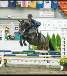 Street Chic "Sheek" AKA: Cartier is a wonderful horse. He is easy across the ground, Does not need a great deal of prep. He’s very easy going, wonderful to flat and lovely to jump. Great brain! Recently, Cartier earned solid miles, ribbons and wins in the 3 ft and 3ft 3" hunter ring and multiple derby's - with a win at Saratoga during WCHR week in May. Note: Warm up rounds are not necessary. He has shown indoors at NEHC Finals with an adult and junior riders where he earned a ribbon win. Cartier and Johanna Hyyppa returned for a second round in the Professional Medal class placing 12th overall out of 70.