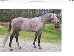 Beautiful 16.2 6 year old Westphalian gelding. Started showing in April of this year and has been very competitive at every A rated show attended. Most recently was Baby Green Hunter champion in a competitive field at the Deep Run Horse Show. Big step, excellent changes, quiet, very brave, and as sweet as can be. A barn favorite. Has dabbled in dressage and has hunter paced, both with winning results. For more information, please call Peg Seals at (757) 846-8183. Professional inquiries only, please.