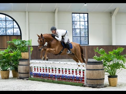 Tasty has already shown his quality in the jumper ring, developing confidently in Belgium with a brave and willing attitude. The Prīmī video day was his very first experience with fillers and flowers—and he took everything in stride, jumping with composure and style. His natural rhythm, scope, and impeccable brain make him equally suited to a career in the hunter or derby ring.