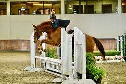 The Flying Dutchman- "Isaak" is a 2014 imported KWPN gelding 16.2hh. Isaak has shown up to 2'9" with plenty of scope and stride for more. He is currently eligible for the 3ft Green Hunters. Although he ideally will shine in the Hunter/Derby ring, he is also a candidate as a versatile three ring horse. Isaak will walk into any ring with confidence and is super brave to the jumps with auto changes. He always jumps, takes a joke, and has a sweet, forgiving nature that makes him a great match for a junior or adult amateur in a program. Isaak is enjoyable to live and work with, stands for farrier, vet, loads, clips, and bathes. He has such a puppy dog personality and is truly a favorite in the barn!