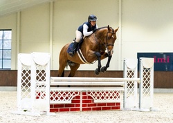 "Lenny" has shown successfully in the Pregreen and derbies at 3'3 last summer. He's ready for show season at 3'6 next summer. Even though Lenny is known in the hunter ring, he would shine as an equitation/medal horse as well due to his flat base and agility.