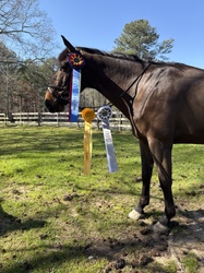 “Louie” is the horse everyone is looking for. He is the winner in the Jr/Am jumpers and has Scope for a professional or aspiring GP rider or can be ridden by an 11 year. Louie has packed around an 11 year, competed up to 1.45 and everything in between. He has done equitation with NO prep. He never needs to see any of the jumps. He is easy in the barn. There is not enough room to list all of his good qualities.