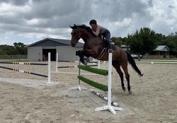 This BOMBPROOF six year old imported Irish Sport Horse gelding by Vivant Van de Heffinck confidently took on WEC Ocala for his first show stateside doing the 5yo classes at 1.15m and came away in the ribbons. He is schooling 1.20m courses at home and has plenty of scope and desire for the big tracks.